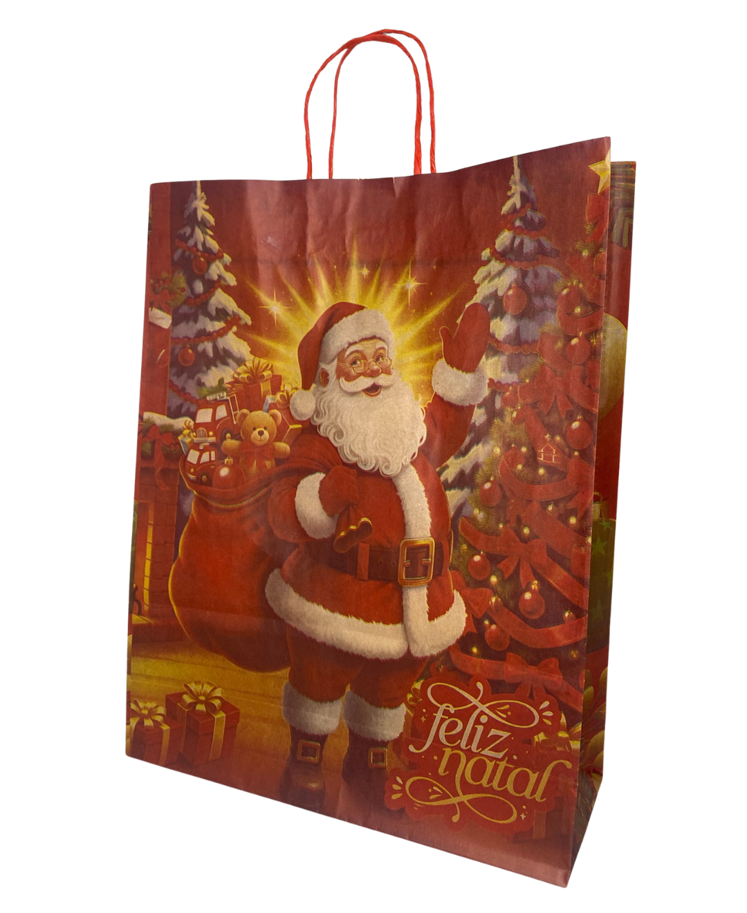 - Estilo natalino com alça vermelha: a alça vermelha confere um charme especial, transformando a sacola em uma parte do presente e trazendo ainda mais destaque aos produtos.
